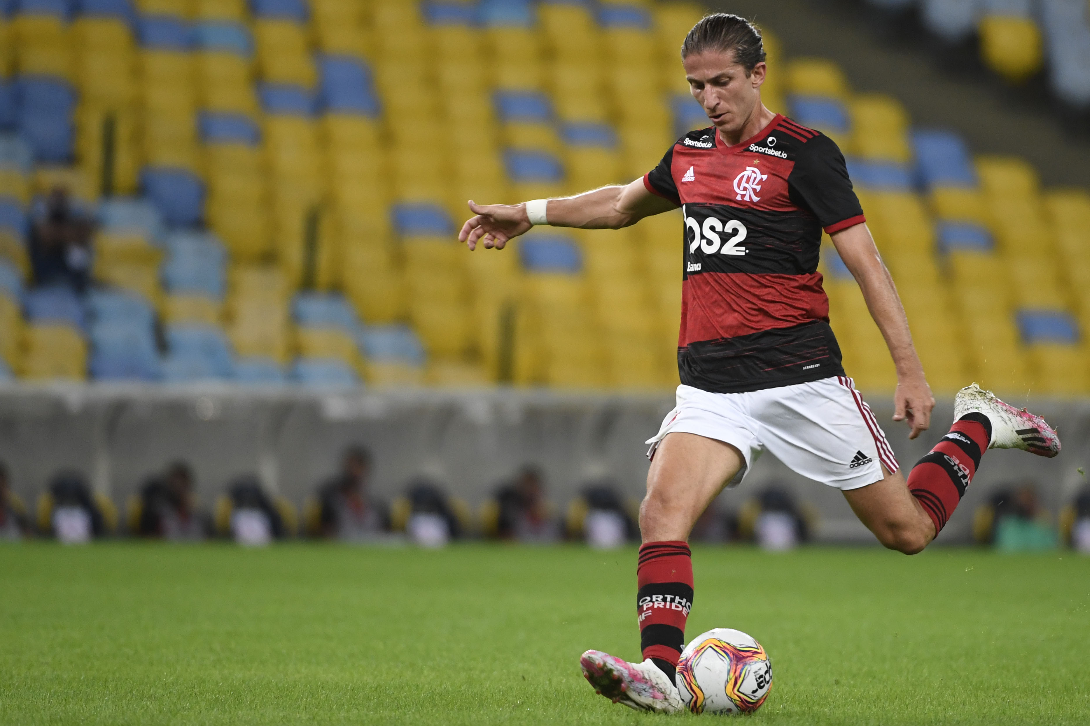 Filipe Luis shoots the ball in Rio de Janeiro, Brazil, on June 18, 2020.
