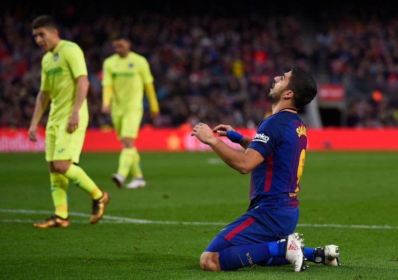 The Uruguayan striker then saw his header kept out by a brilliant Vicente Guaita save as the match moved into stoppage time, with Barca failing to score at home in La Liga for the first time since November 2016.