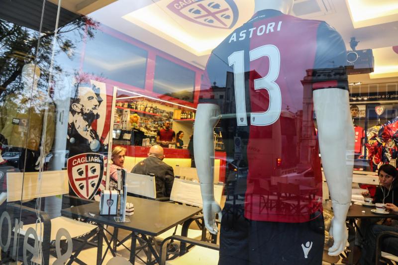 The jersey of deceased Italian player Davide Astori isa seen at the Cagliari Calcio in a Cagliari Calcio Store in Cagliari, Sardinia island, Italy, on March 4, 2018.