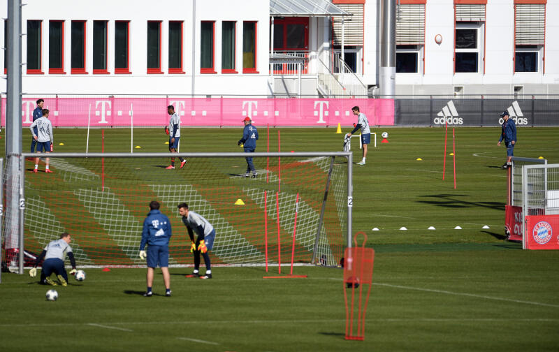 Players of German first division soccer club Bayern Munich during their training session in Germany, on April 6, 2020.