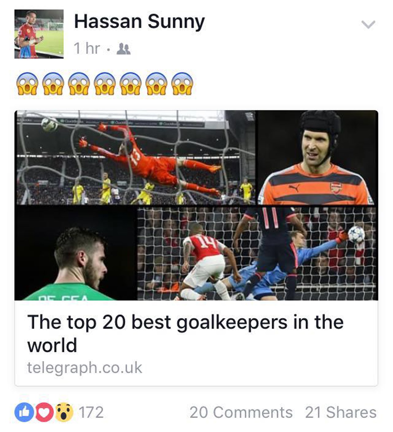 Singapore footballer Hassan Sunny said he initially thought the Telegraph article naming him the 18th best goalkeeper in the world was an April Fool's joke.