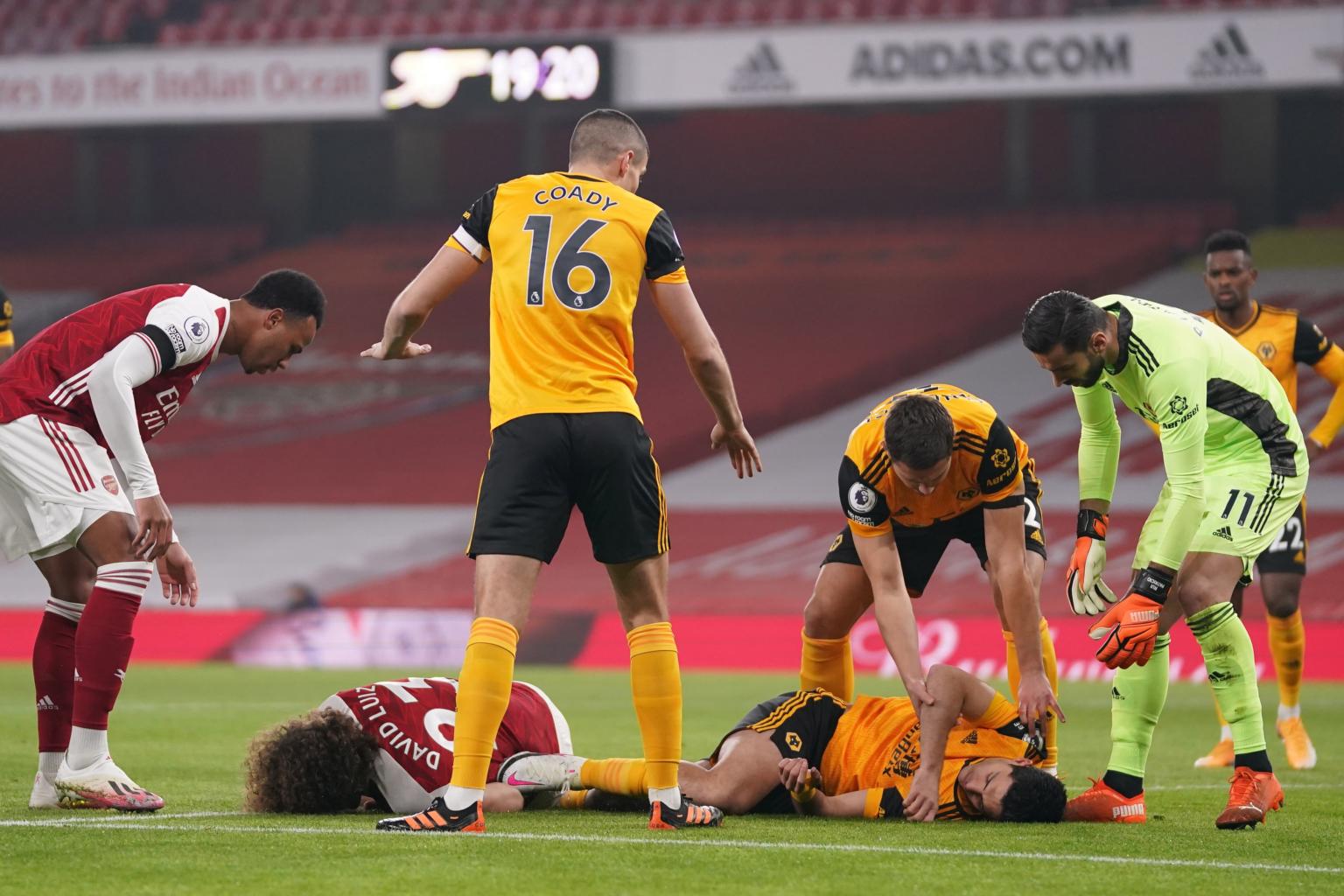 Wolverhampton Wanderers' Raul Jimenez was knocked unconscious after an accidental collision with Arsenal's David Luiz.