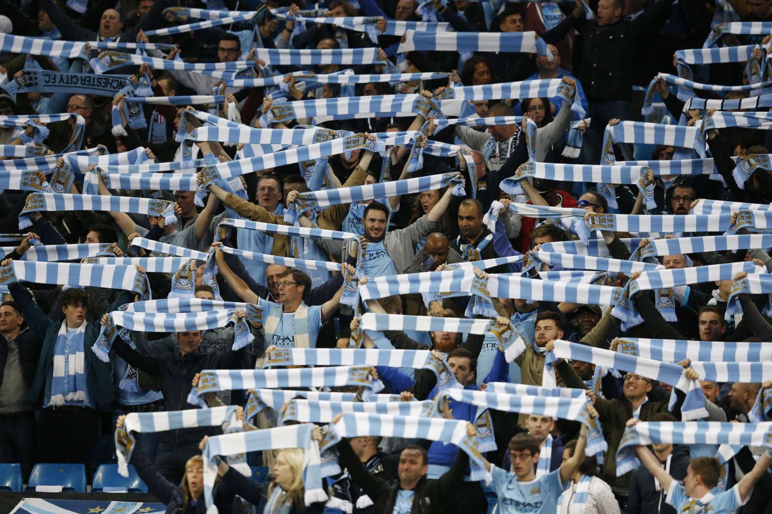 Manchester City fans at the Etihad Stadium on Sept 15, 2015.