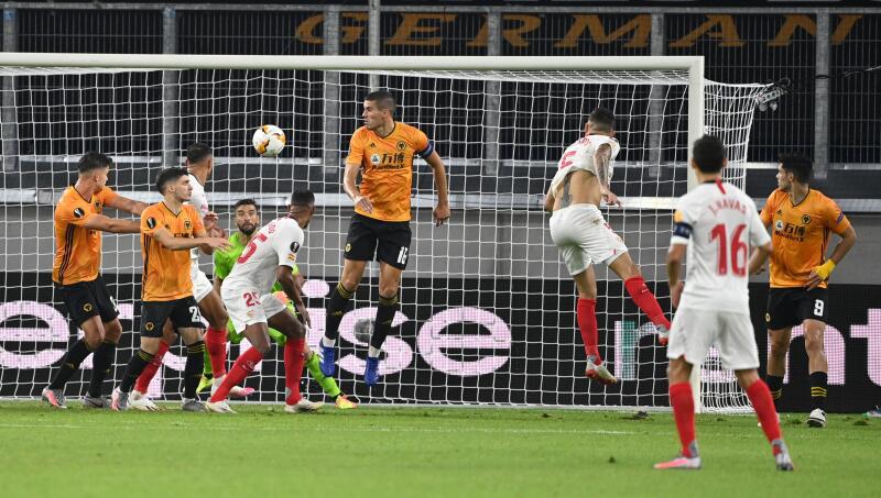 DUISBERG, GERMANY (REUTERS) - Sevilla midfielder Lucas Ocampos headed a late goal to snatch a 1-0 win over Wolverhampton Wanderers as they reached the Europa League semi-finals on Tuesday (Aug 11) after the English side paid the price for an early penalty miss.