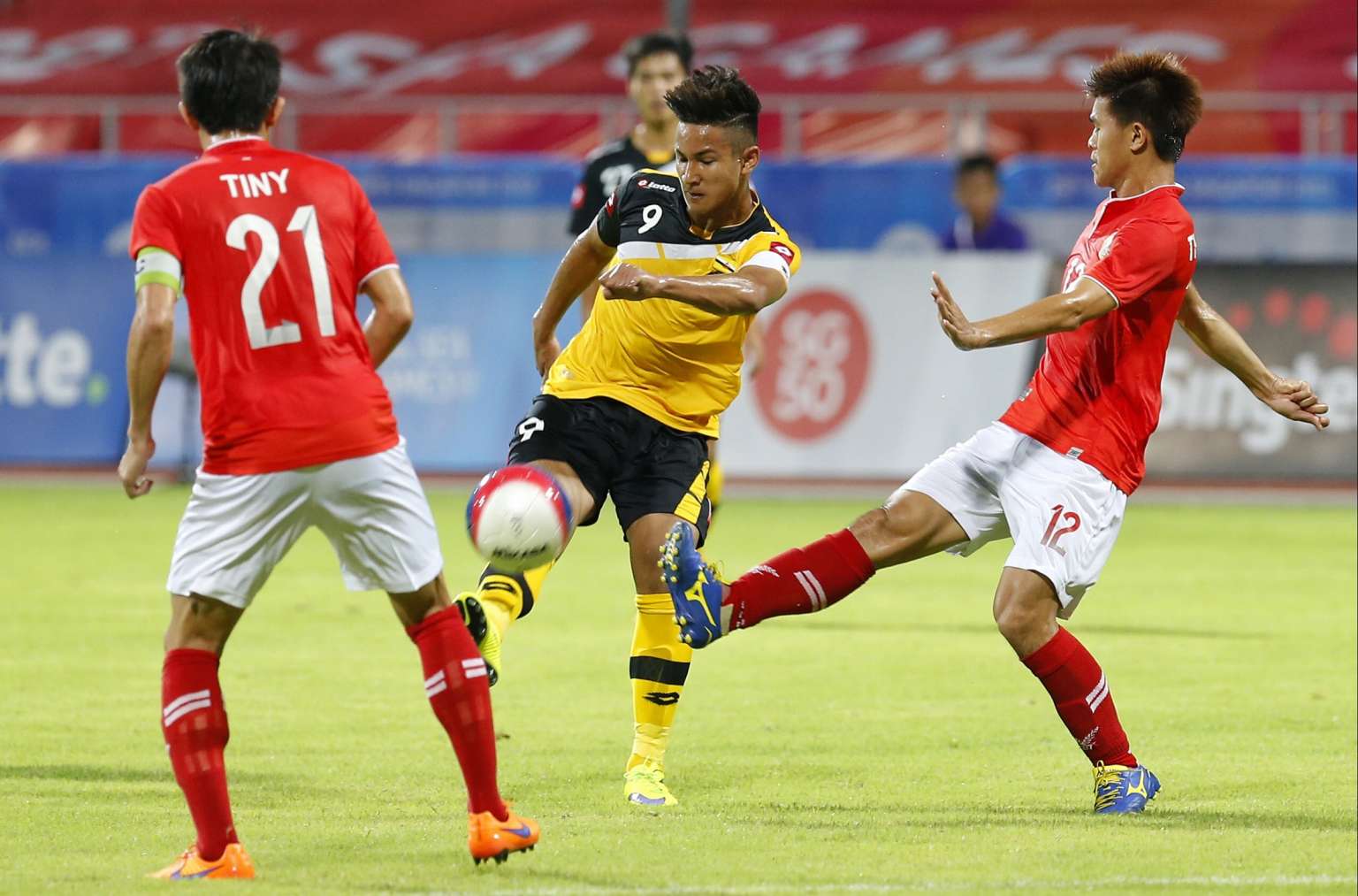 Faiq Jefri Bolkiah (centre) attempts a shot against Laos in the 28th SEA Games on May 31, 2015.