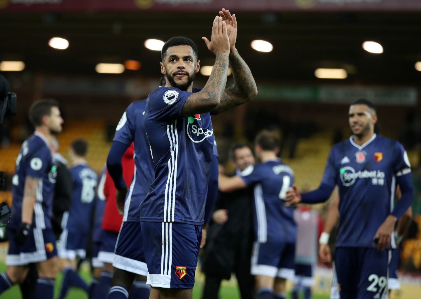 Watford's Andre Gray applauds the fans after the match.