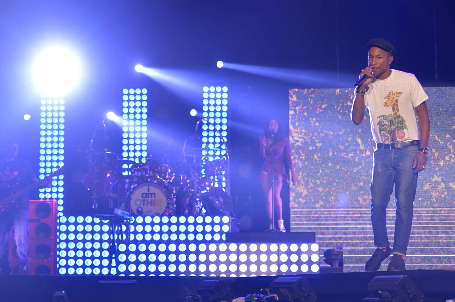 American pop, hip-hop artist Pharrell Williams performs at the Padang Stage on the first night of the 2015 Formula 1 Singapore Airlines Singapore Grand Prix, on September 18, 2015.