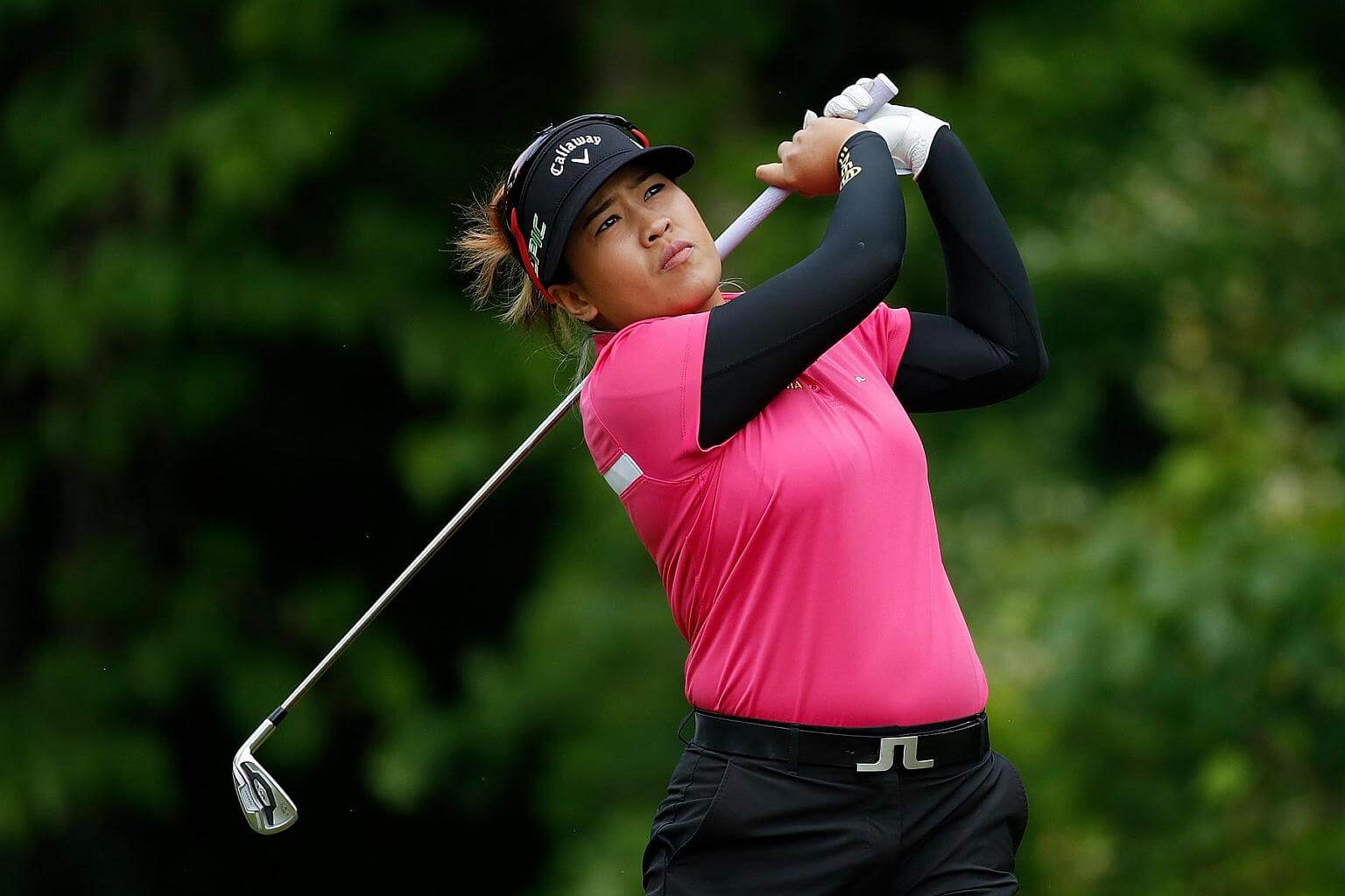 Ariya Jutanugarn of Thailand watches her tee shot on the seventh hole during the final round of the LPGA Volvik Championship on May 28, 2017.