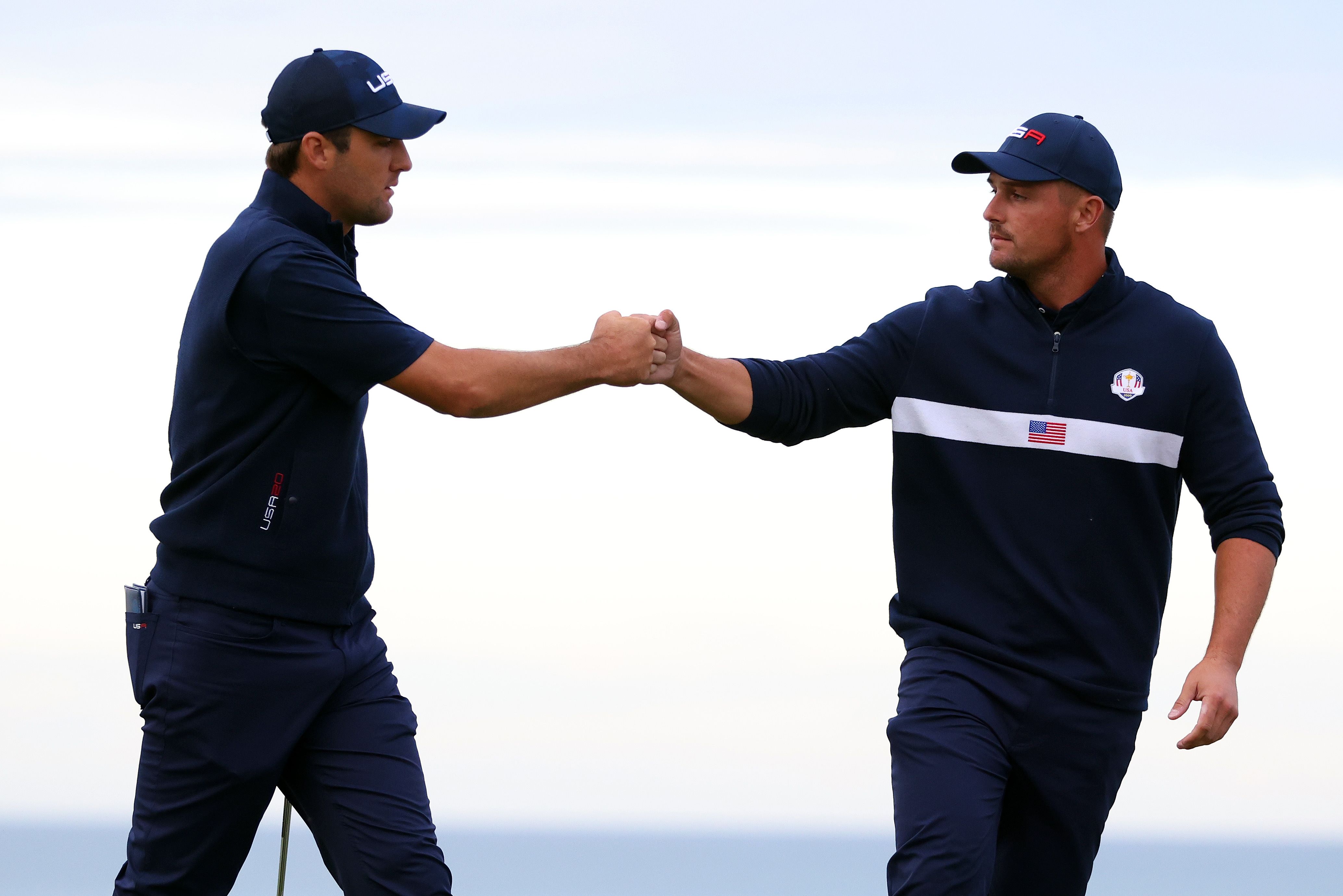 Bryson DeChambeau and Scottie Scheffler of team United States at Whistling Straits in Wisconsin on Sept 25, 2021.