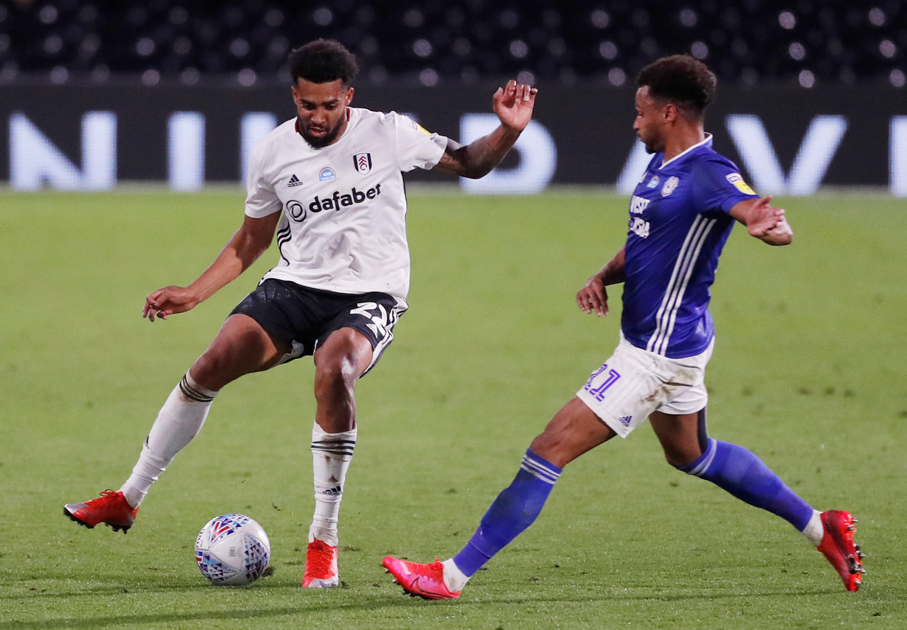 Fulham's Cyrus Christie in action with Cardiff City's Josh Murphy.