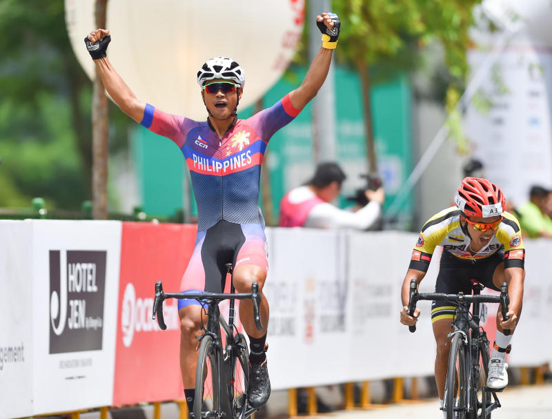 Malaysia's Fauzan Ahmad Lutfi and Filipino George Oconer broke away from the pack early and were the first riders to cruise past the finish line together on Saturday. The race ended in a tight sprint, with Filipino Ronald Oranza raising his arms aloft as victory was sealed.