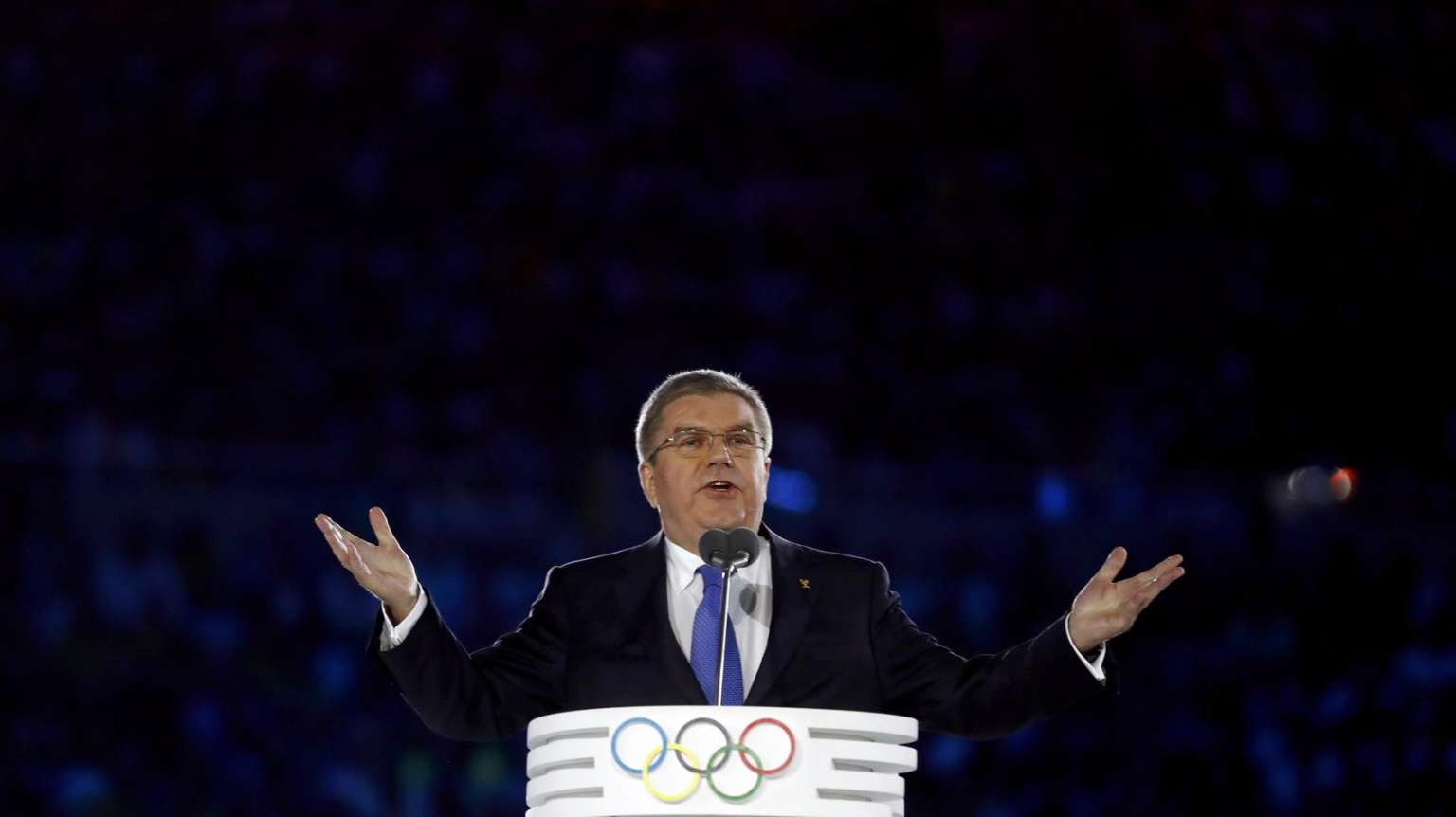International Olympic Committee (IOC) President Thomas Bach speaks during the Opening Ceremony of the 2016 Rio Olympics.