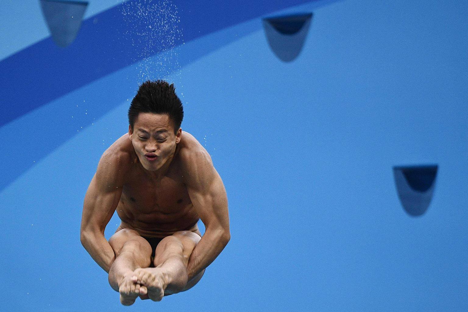 China's He Chao competes in the Men's 3m Springboard Preliminary during the diving event at the Rio 2016 Olympic Games on August 15.