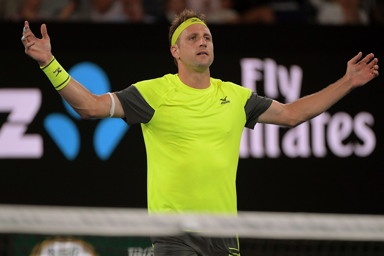 Tennys Sandgren of the United States celebrates winning his round of 16 match against Dominic Thiem of Austria at the Australian Open in Melbourne on Jan 22.