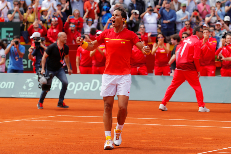 Rafael Nadal (above) beat Alexander Zverev 6-1, 6-4, 6-4 in their Davis Cup quarter-final on April 8, 2018.