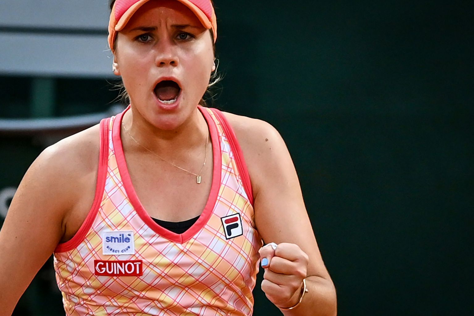 Kenin celebrates after winning against the Czech Republic's Petra Kvitova.
