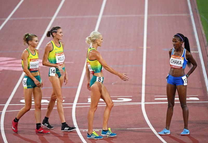 Lesotho's Lineo Chaka, attempting the 10,000m for the first time, ran the last few laps on her own at the Carrara Stadium. Out of the 19-runner field, 18th-placed Beth Potter of Scotland had finished her race more than three minutes before Chaka came in on the home straight. But in an act of sportsmanship, Australia's trio of Celia Sullohern, Madeline Hills and Eloise Wellings all stayed on the track to wait for Chaka to cross the finish line, clapping and cheering for the 30-year-old.