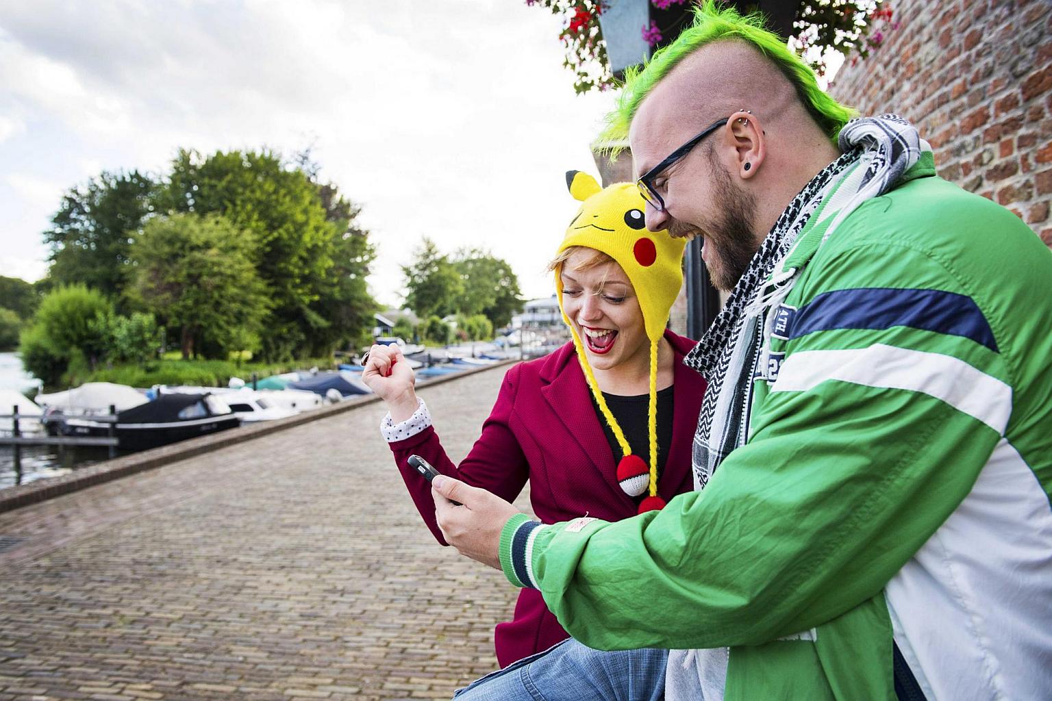 People play Pokemon Go on their smartphone in Leerdam, The Netherlands.