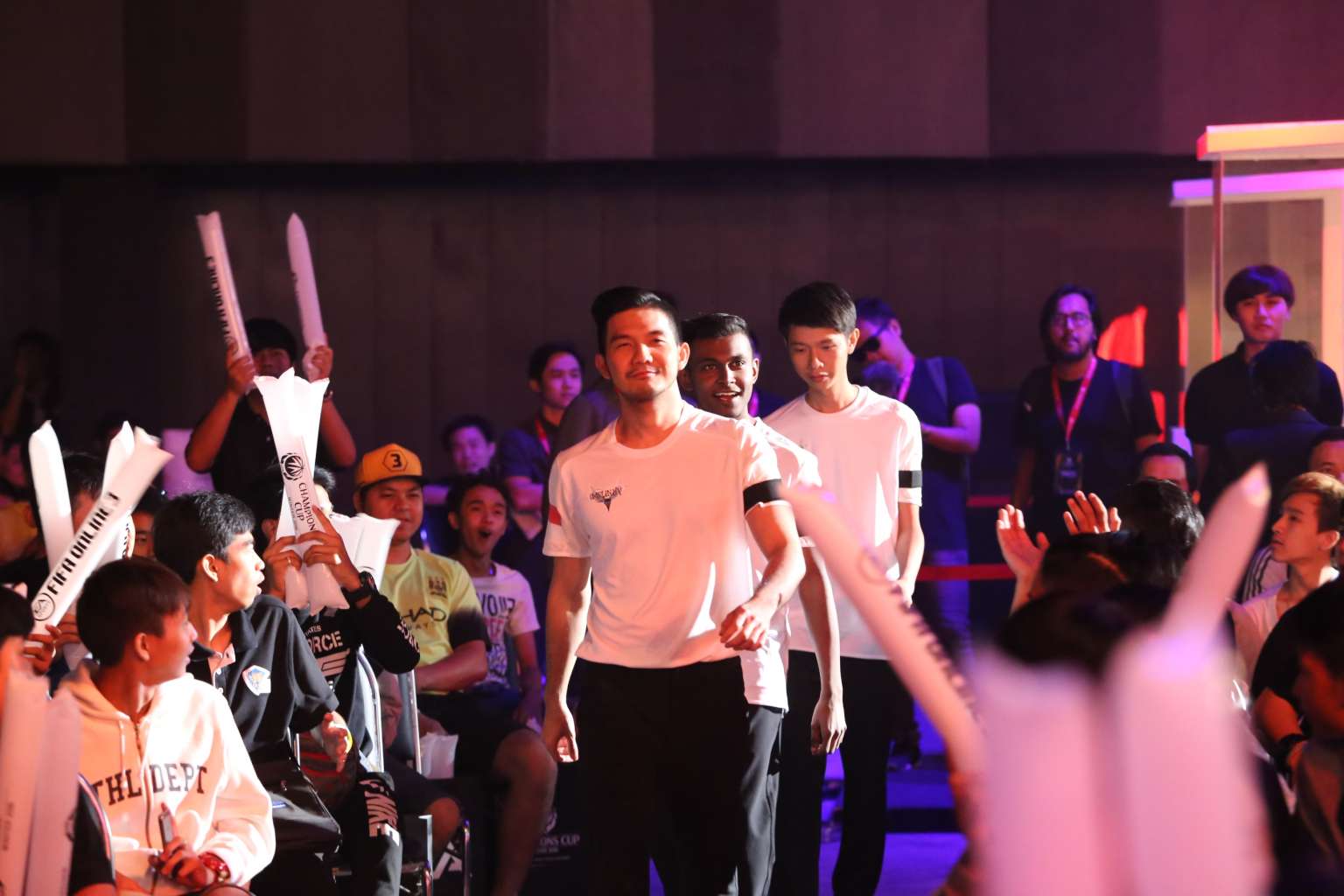 Singapore's Team Impunity making their way onto the tournament stage: (From front) Chiang "Hibidi" Wen Jun, 26; Amraan Gani "Amraan" Musa Bakar, 22 and Joseph "Zarate" Yeo Jia Hui, 23.