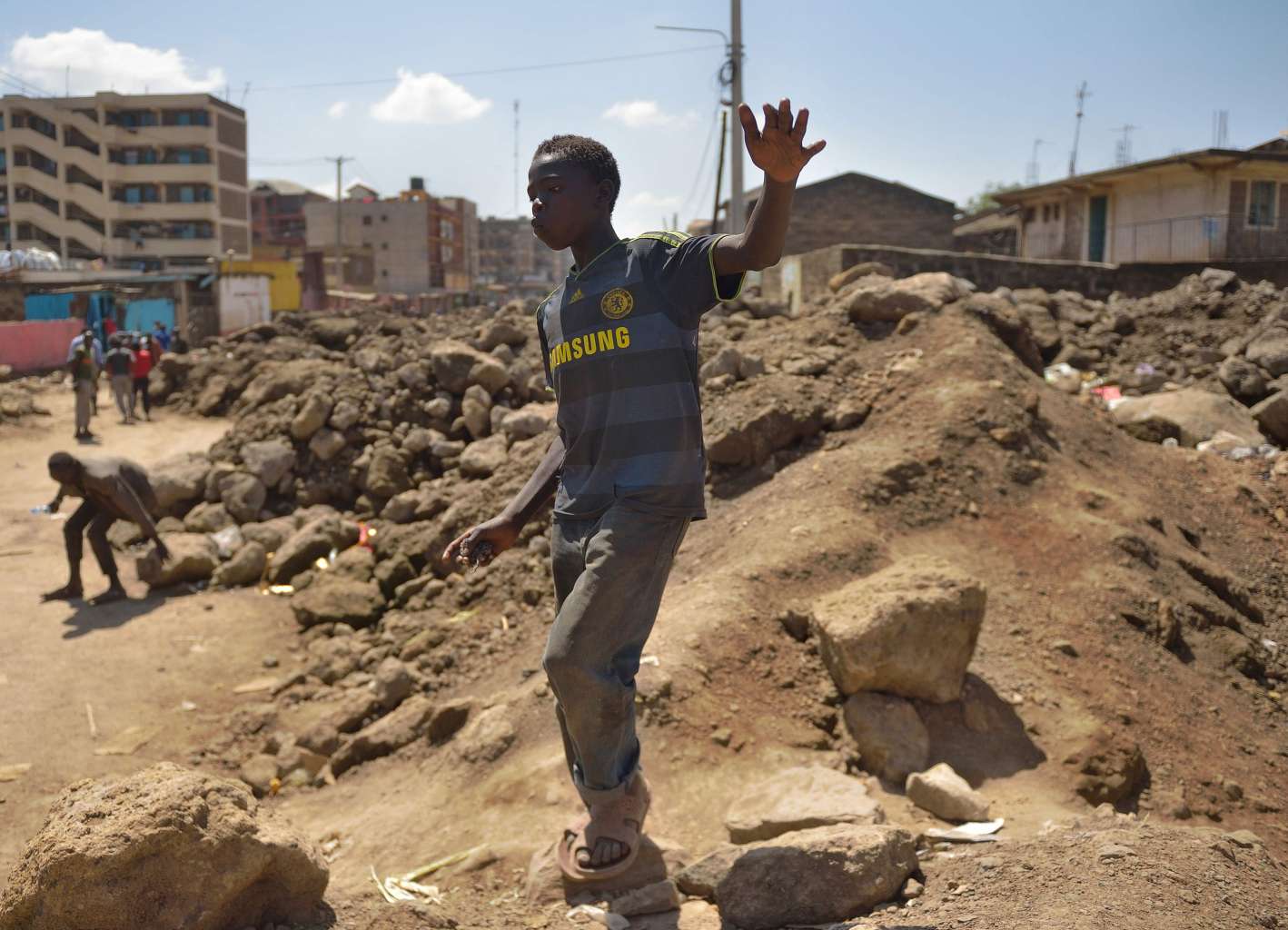 A homeless boy walking in a landfill in the Kenyan capital of Nairobi.