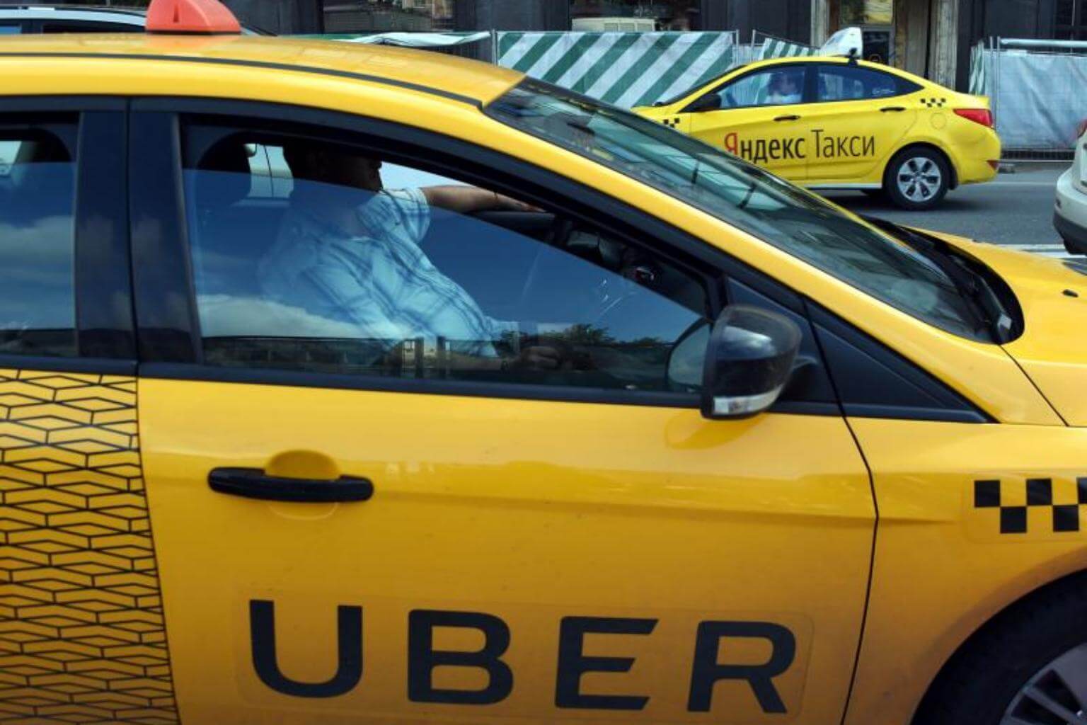 An Uber car drive on a street in Moscow on July 13, 2017.