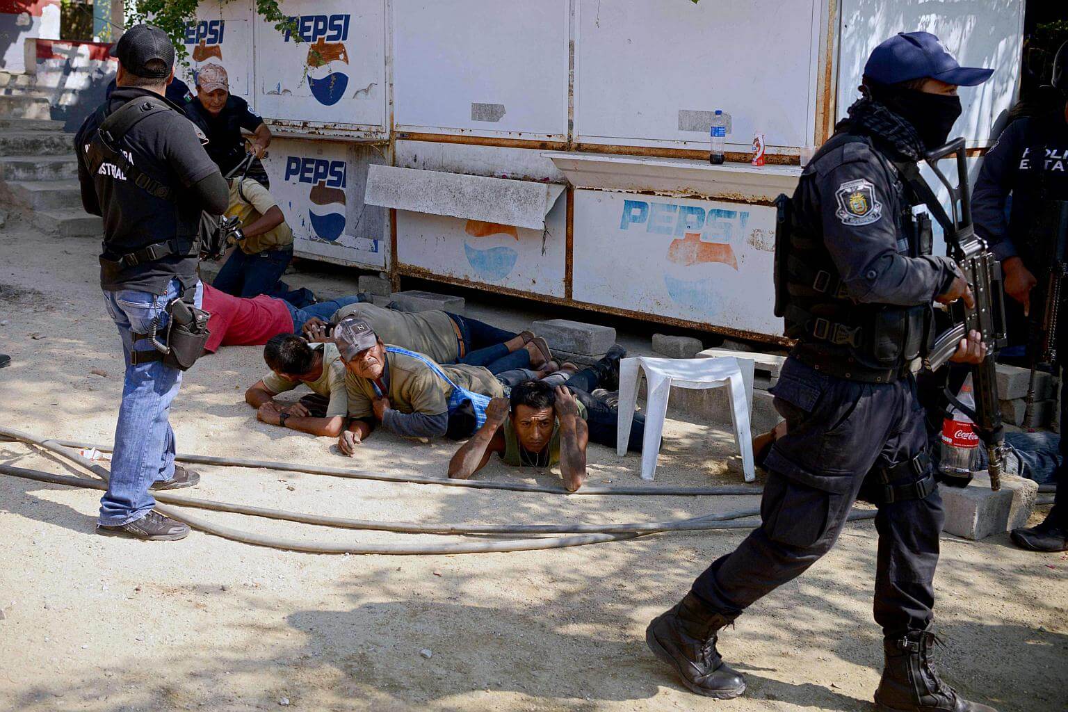 Guerrero policemen arresting a member of the Regional Coordinator of Community Authorities (CRAC) after a series of clashes at La Concepcion in Guerrero, Mexico, on Jan 7, 2018.