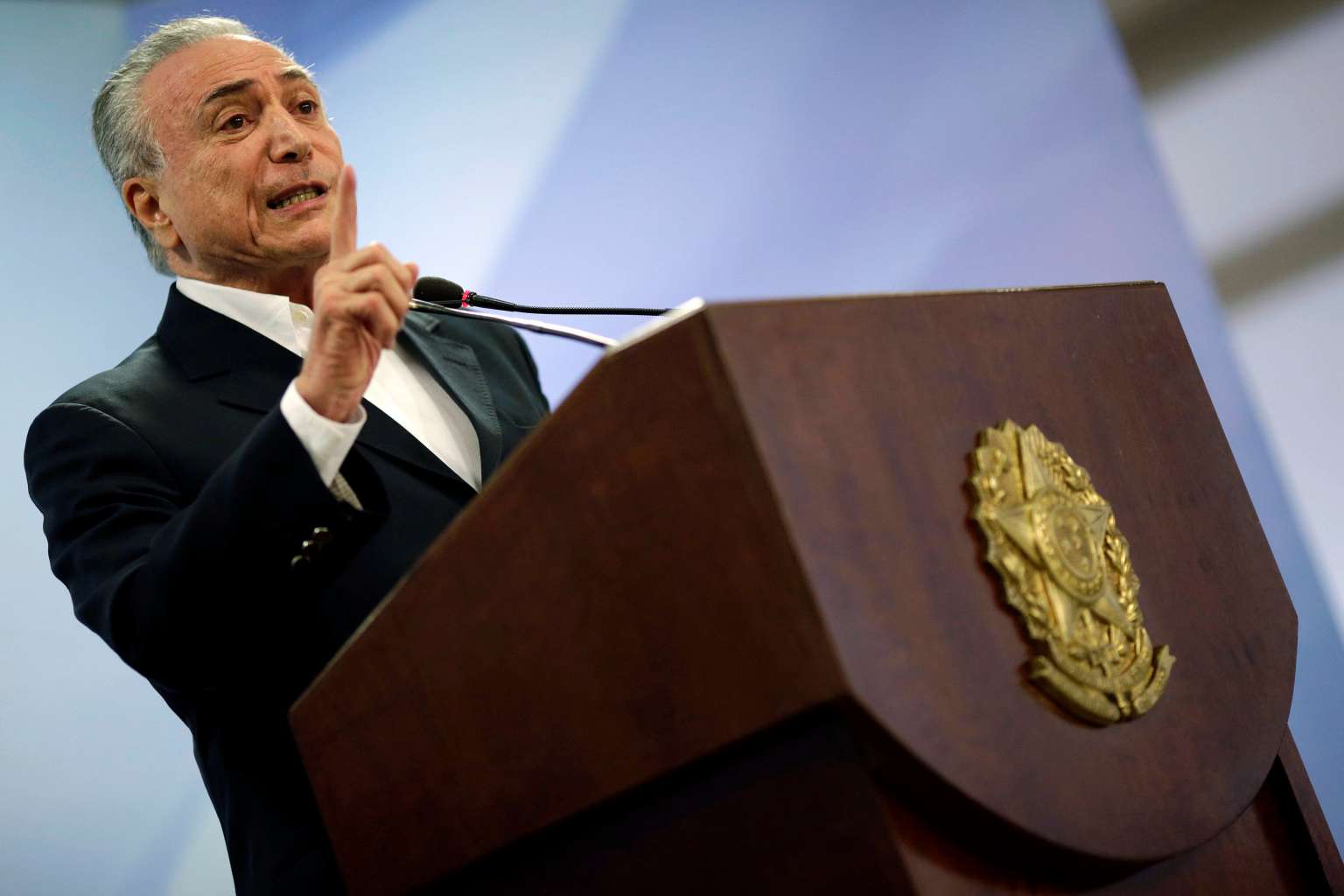 Brazil's President Michel Temer speaks at Planalto Palace in Brasilia, Brazil, on May 20, 2017.