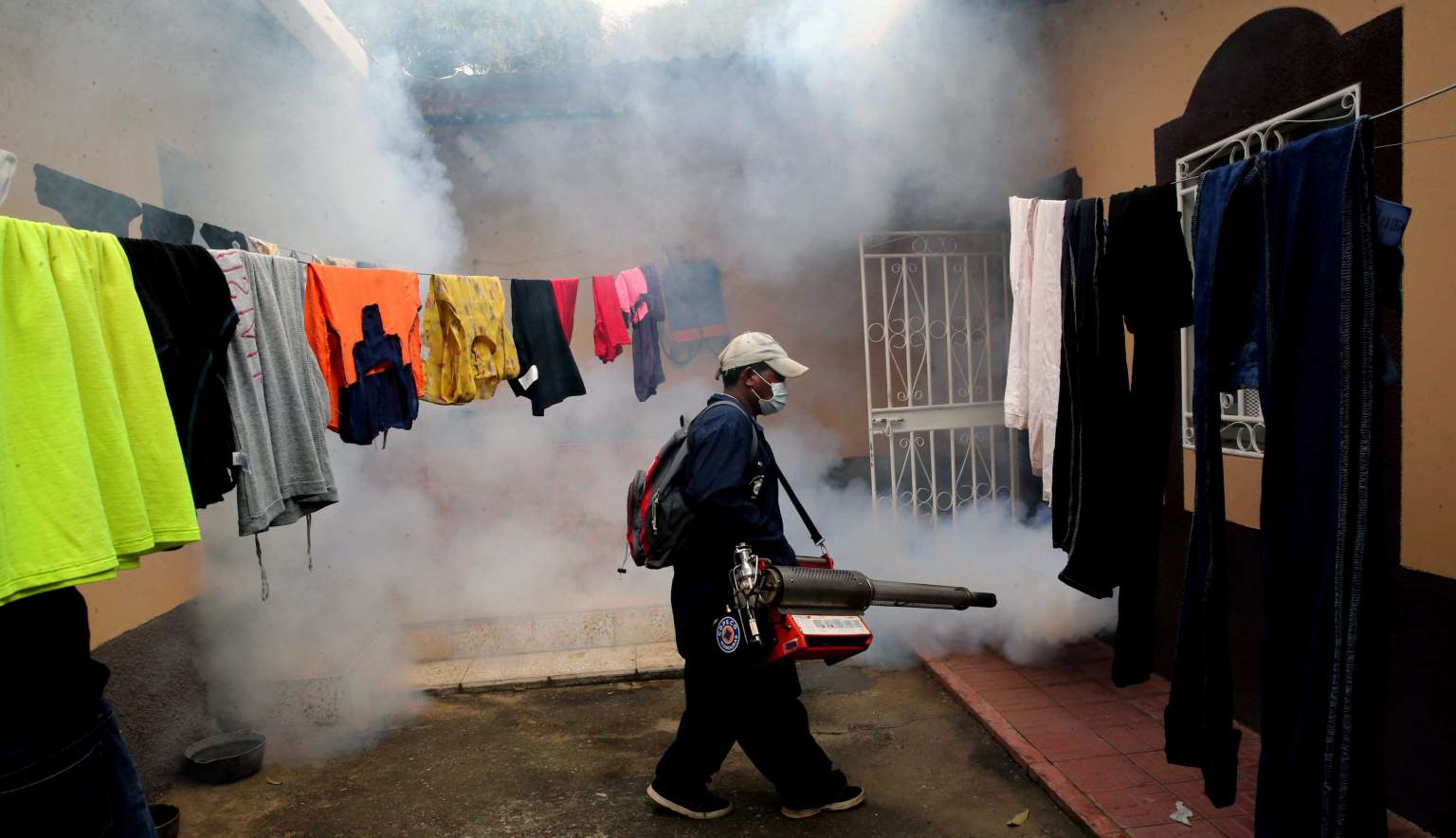 A government employee fumigating a house to prevent the possible spreading of the Zika virus in Catacamas, Honduras on Feb 6, 2016.
