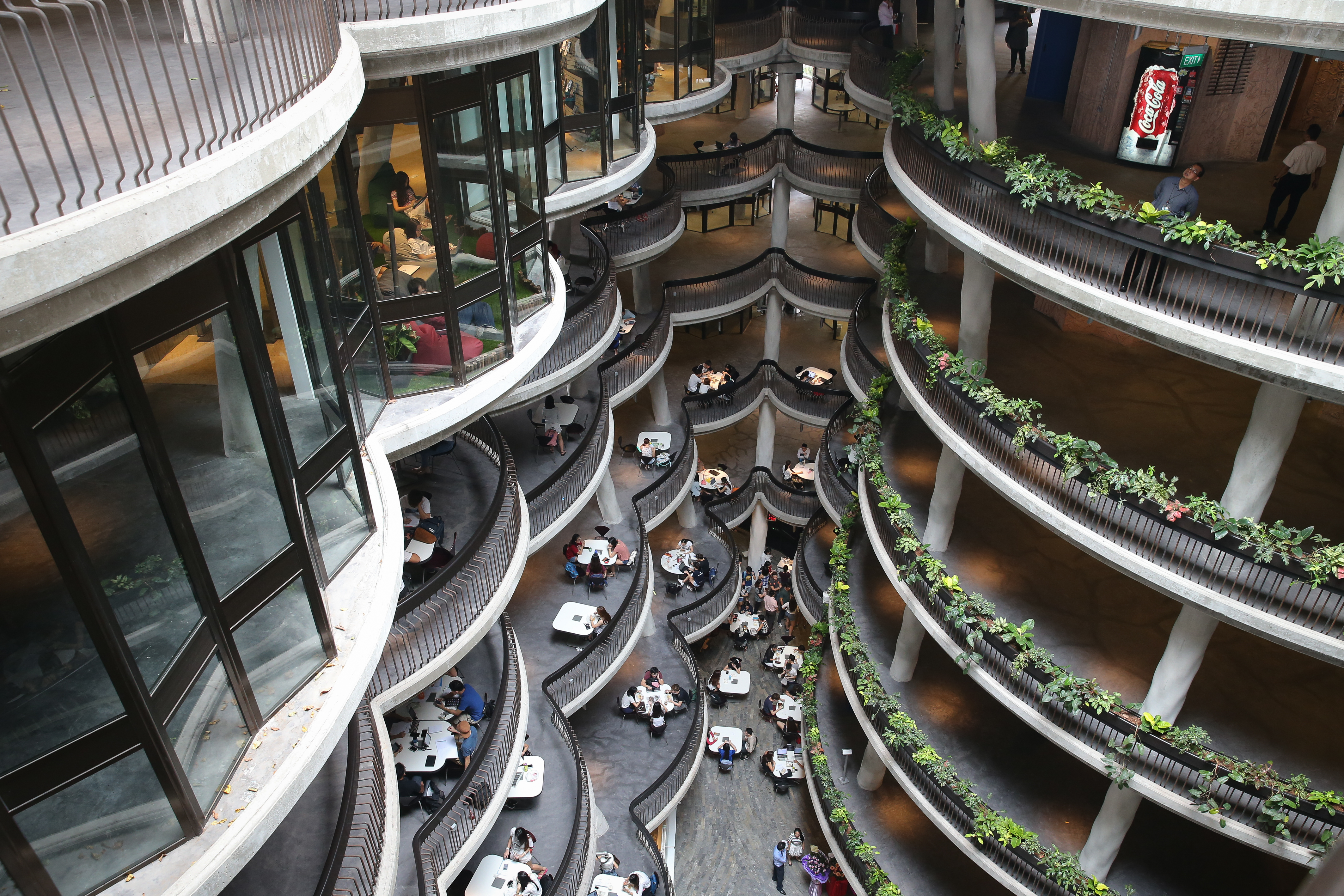 The Hive was dreamt up by Mr Thomas Heatherwick, a renowned British designer. The circular design aims to get rid of corners and corridors, to encourage a new kind of collaborative learning.