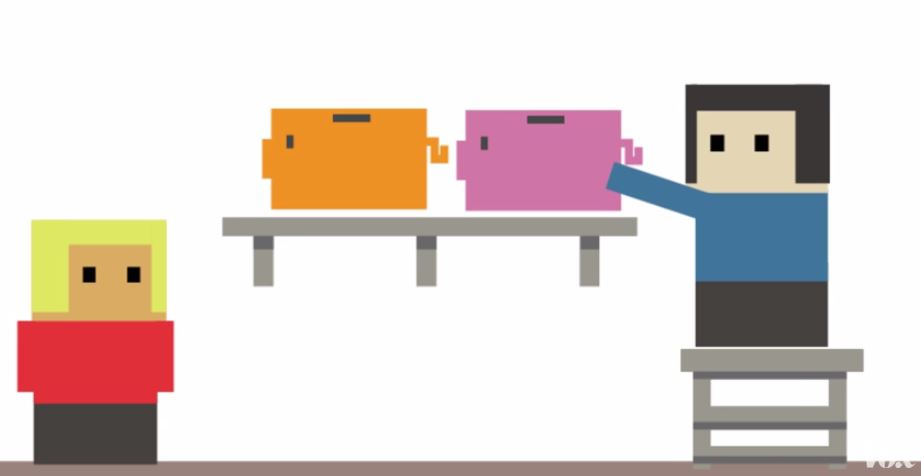 One of the cartoons produced by news website Vox, explaining the Panama Papers controversy with a piggy bank analogy.