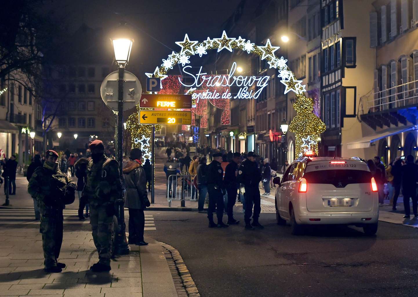 French soldiers and police patrol the entrance of the Christmas market in eastern France.