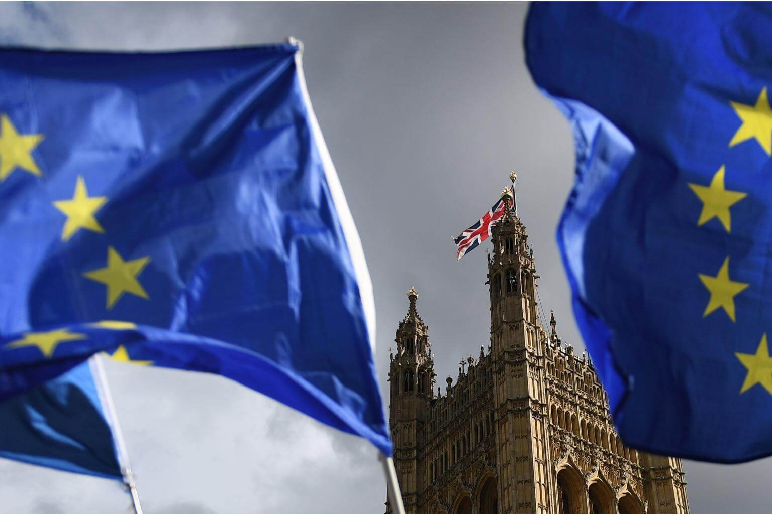 The European Union flags are pictured in front of Parliament in London, Britain, on Sept 11, 2017.