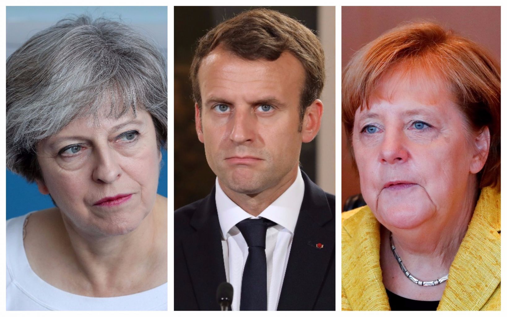 Leaders (from left) Theresa May, Emmanuel Macron and Angela Merkel issued a joint statement.