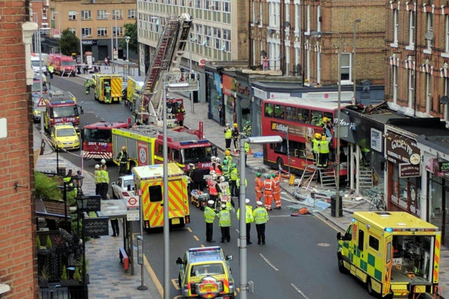 Emergency services attend the scene of a bus crash in Lavender Hill, London on Aug 10, 2017.
