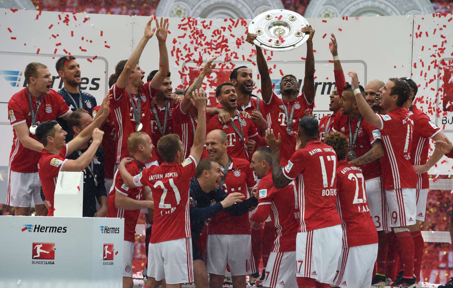 Bayern Munich celebrating their Bundesliga title win on May 14, 2016.