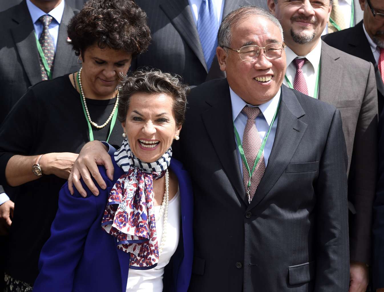 UNFCCC Executive Secretary, Christiana Figueres laughs with China Special representative for climate change Zhenhua Xie in Paris in July.