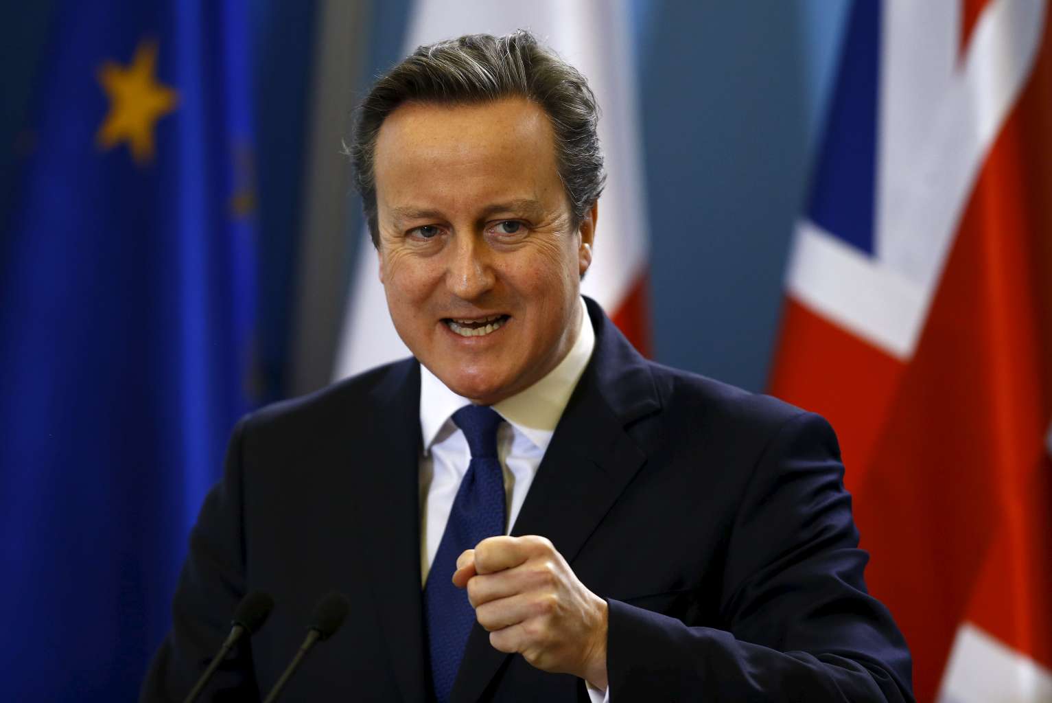Britain's Prime Minister David Cameron speaks during a joint news conference with his Polish counterpart Beata Szydlo in Warsaw, Poland.