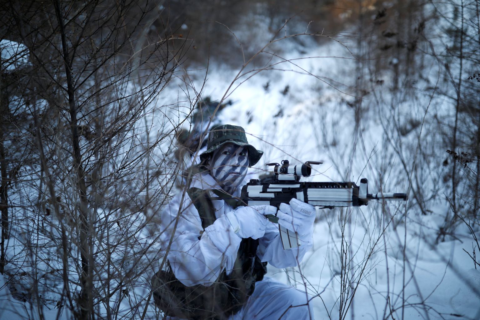 South Korean and US Marines take part in a winter military drill in Pyeongchang on Dec 19, 2017.