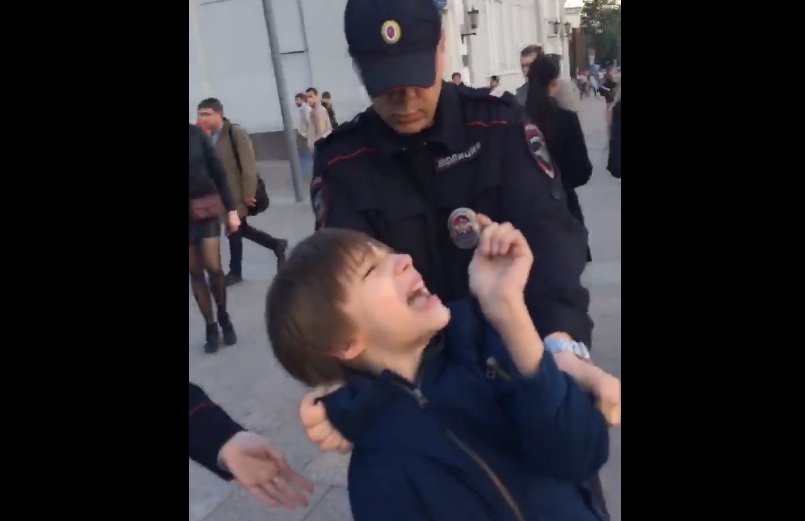 Officers were shown bundling the screaming boy into a police car in central Moscow as he shouted "Save me!" in distressing cellphone footage aired on Russian TV.