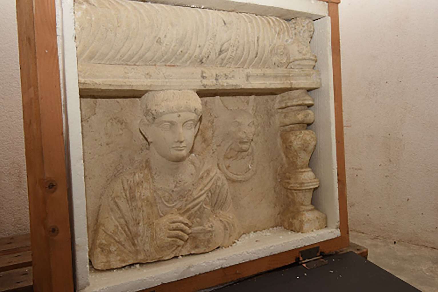 A funeral bas-relief from Palmyra in Syria discovered during a customs search in the free ports of Geneva.
