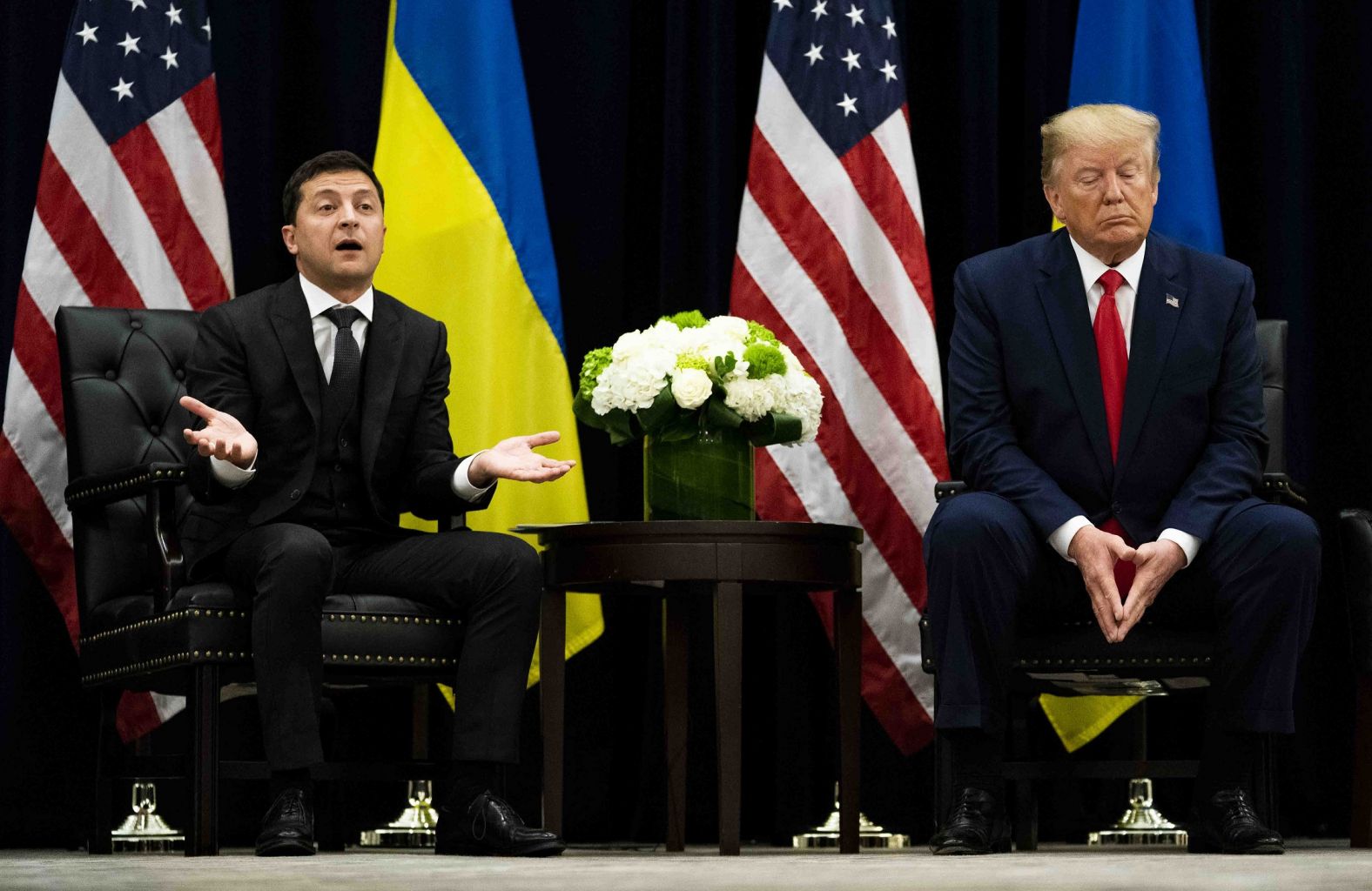 Ukraine President Volodymyr Zelensky and US President Donald Trump meet in New York on Sept 25, 2019.