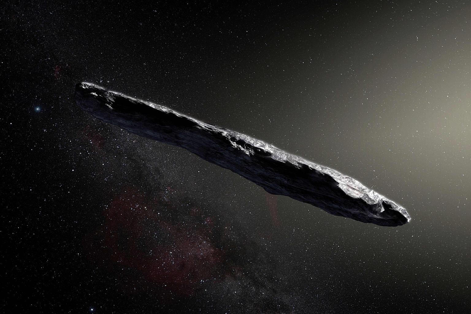 An artist's impression of the first interstellar asteroid, Oumuamua.