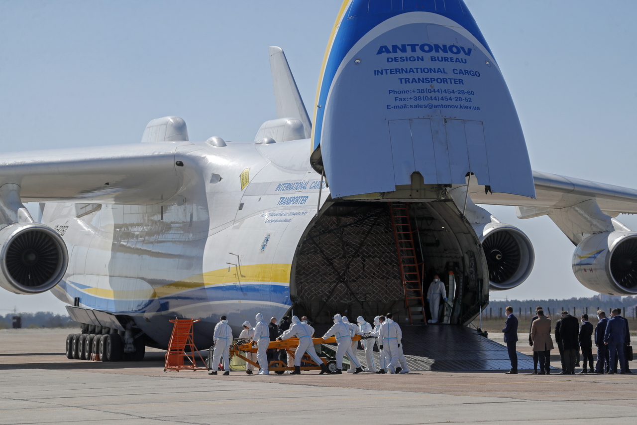 On Thursday it brought 12 million masks, 260,000 protective glasses and 100,000 gowns to help protect Ukrainian medics treating coronavirus patients.