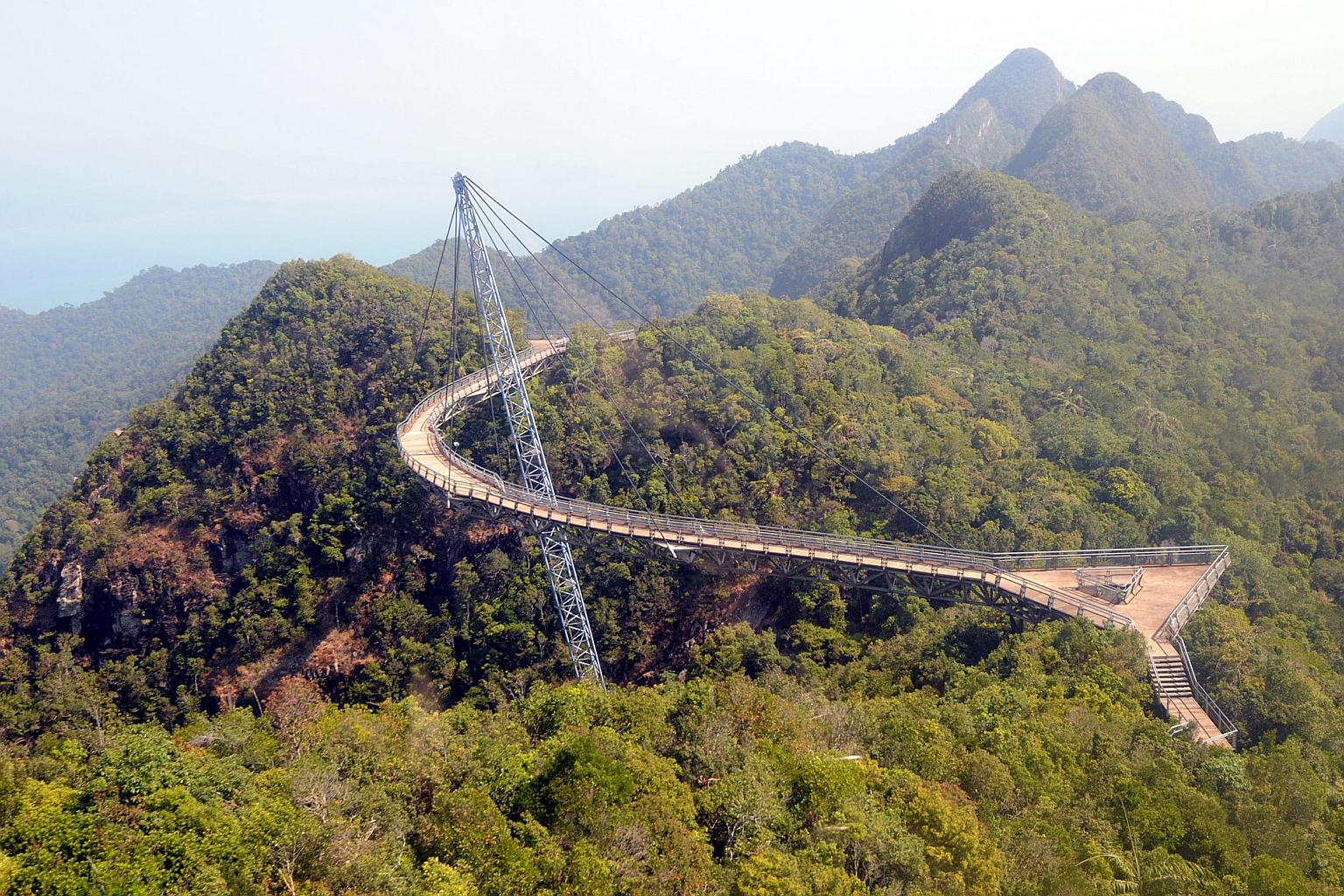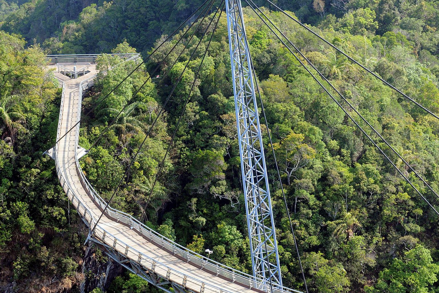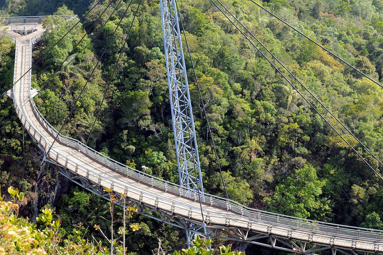 Located 2,300 feet (701 metres) above sea level, the Sky Bridge can be accessed by the Langkawi Cable Car. The views on the way to the top of Langkawi's second-highest peak include those of the Telaga Tujuh Waterfalls and the rainforest.