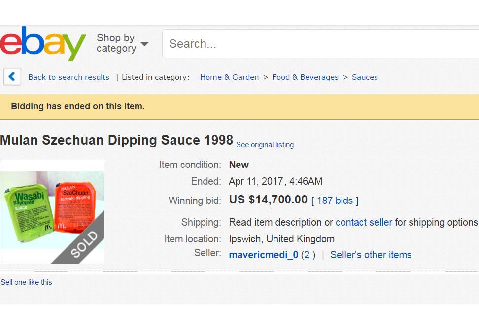 McDonald's Sichuan sauce from 1998 sells for S$20,500 on eBay, China netizens amused