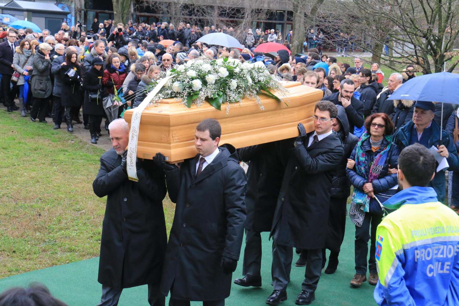 Pall bearers carry the casket containing the body of Giulio Regeni in Fiumicello (Udine) on Friday (Feb 12).