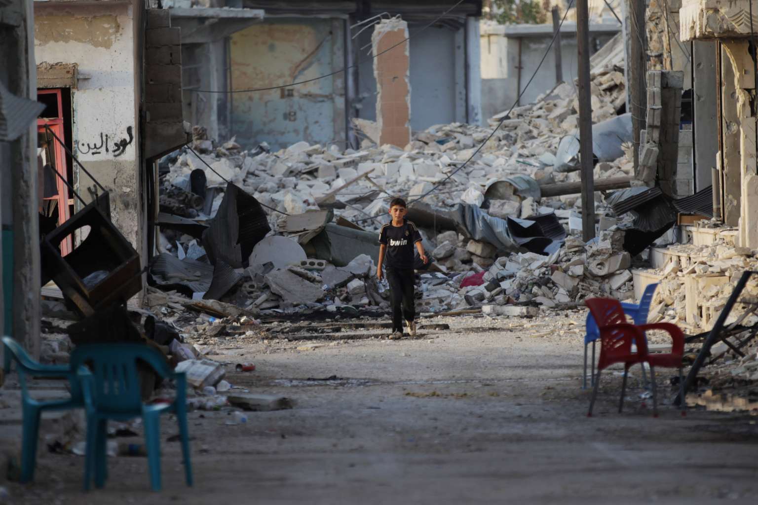 A boy walks past damaged buildings in the northern Syrian rebel-held town of al-Waqf, in Aleppo on Oct 9, 2016.
