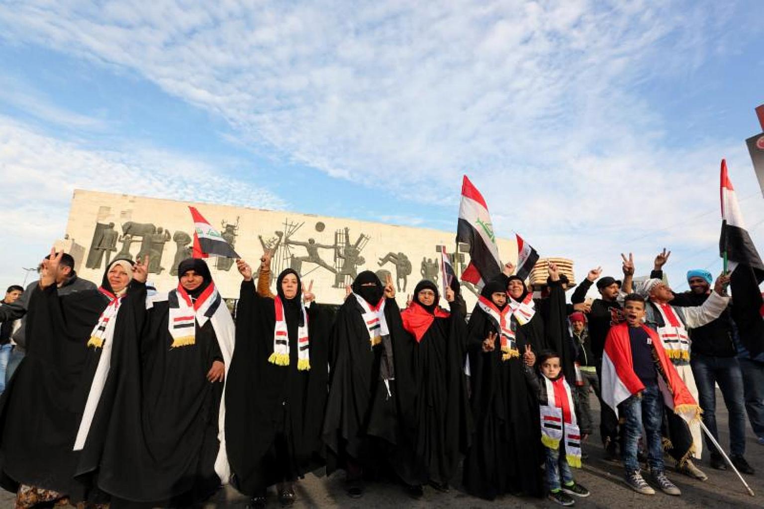 Iraqis celebrate the defeat of the Islamic State in Iraq and Syria in Baghdad on Dec 10, 2017.
