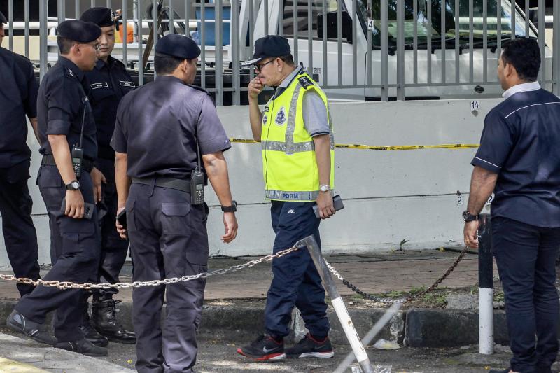 Royal Malaysian Police officers collecting evidence at the scene of the drive-by shooting of Palestinian scientist Fadi Mohammad al-Batsh, on April 21, 2018.