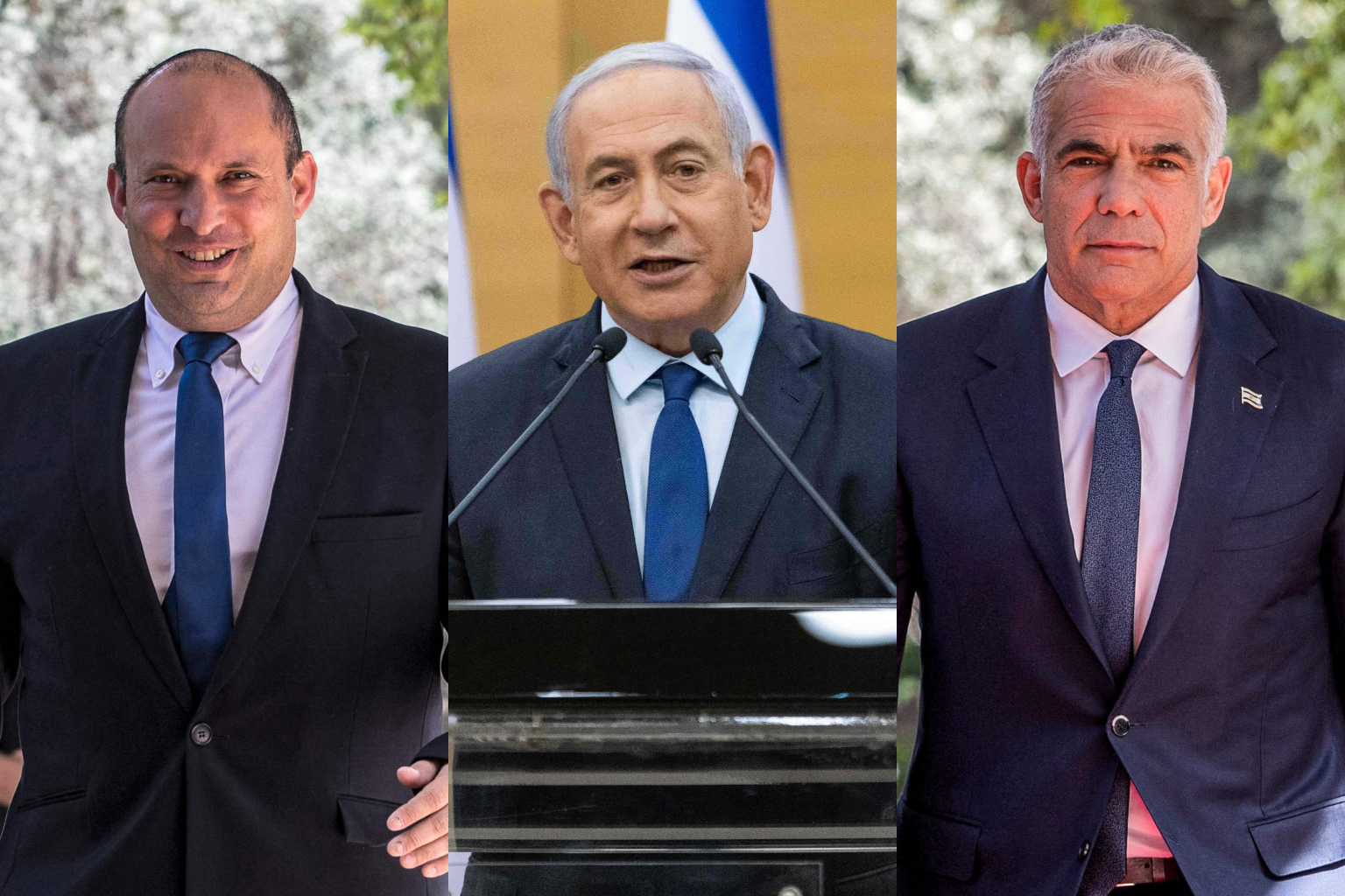 (From left) Mr Naftali Bennett, Israel PM Benjamin Netanyahu and Mr Yair Lapid.